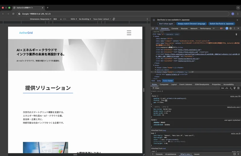 作ったページで